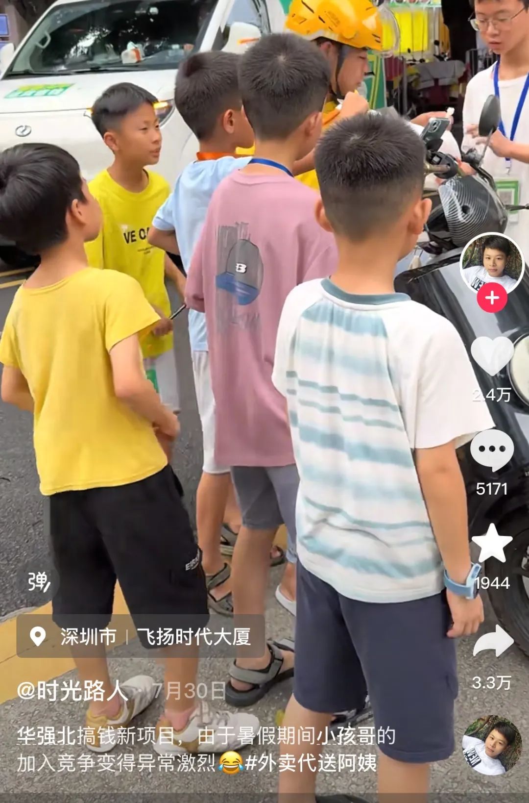 或許只要不學習幹什麼都來勁,又或許是第一次掙錢的滋味太誘人,越來越多的小孩兒聚集在華強北送外賣。