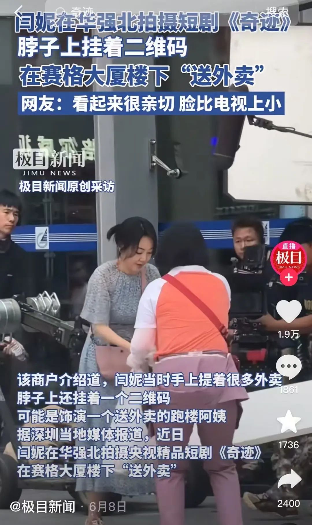 最近正在華強北拍攝的短劇《奇蹟》中,演員閆妮就飾演了一位“跑樓阿姨”。