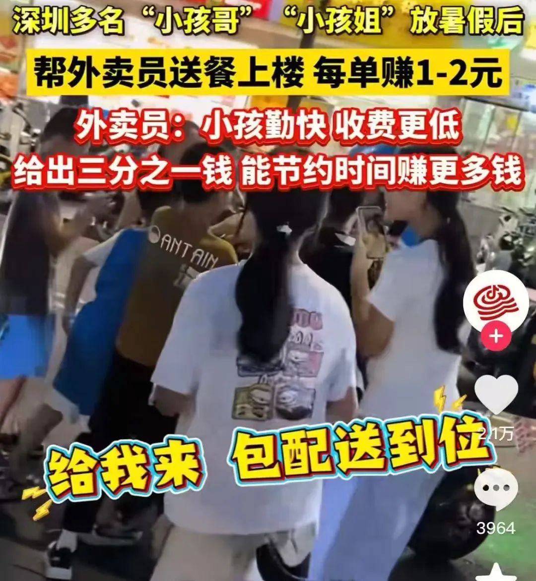 當網友紛紛稱讚:“最能吃苦的那一輩回來了””“這不比在家玩手機強?”的時候;華強北的打工人早已在外賣訂單上備註了:求求了,讓小孩代送上來。