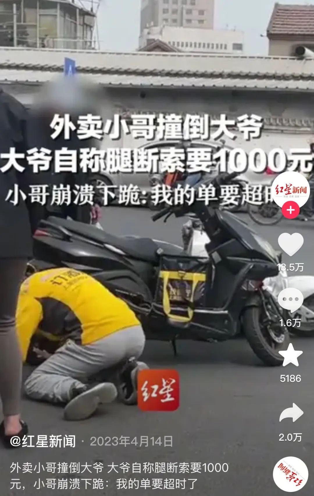 在過去很長一段時間,被困在最後一百米的騎手,因擔心送餐超時,有的急到當場哭了,有的甚至還急到下跪。