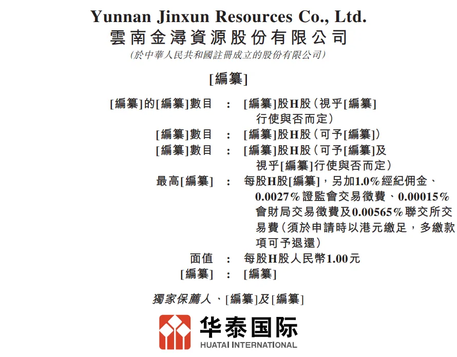 據港交所近日披露,雲南金潯資源股份有限公司向港交所主板遞交上市申請,華泰國際為獨家保薦人。