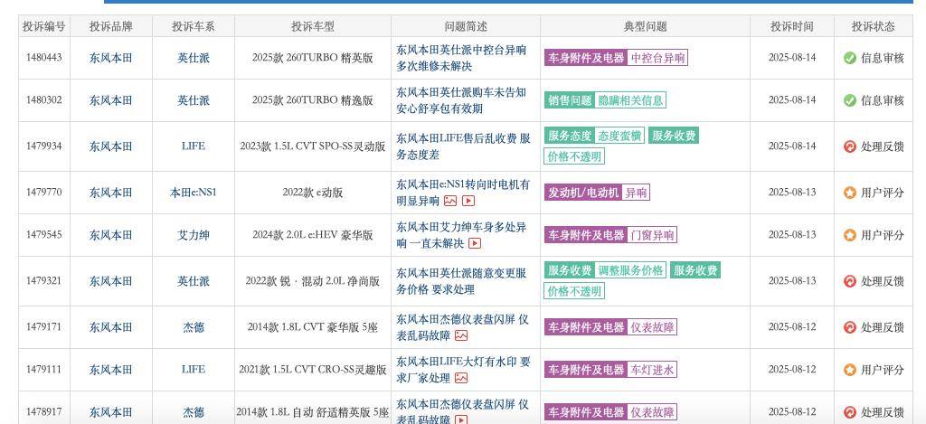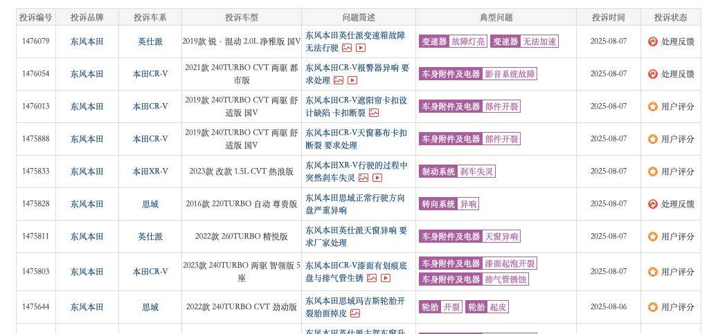 在第三方車質網投訴平台上,東風本田的質量問題投訴呈爆發態勢。從後輪吃胎、底盤生鏽到新車中控異響,各種問題層出不窮,廠家卻往往以“正常”、“使用環境導致”等理由搪塞,拒不承擔責任。這種對質量問題的漠視和對消費者權益的踐踏,無疑進一步加劇了東風本田的信任危機。