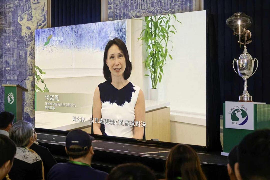 澳娛綜合度假股份有限公司常務董事何超鳳女士 澳娛綜合常務董事何超鳳女士表示:「澳娛綜合一直積極支持國家及本地體育發展,並以 推動『體育+旅遊』融合為己任。自2023年起,我們成為冠名贊助商,全力支持重啓澳門 高爾夫球公開賽,並展開為期三年的贊助計劃。過去兩屆賽事,我們與特區政府體育局、 IMG、亞巡賽及澳門高爾夫球總會合作無間,攜手推動賽事不斷升級、煥發新貌。今天, 我們欣然宣佈,在此良好基礎上延續合作,確定續辦未來兩屆賽事,繼續與各方攜手推 進澳門高爾夫運動的長遠發展。」
