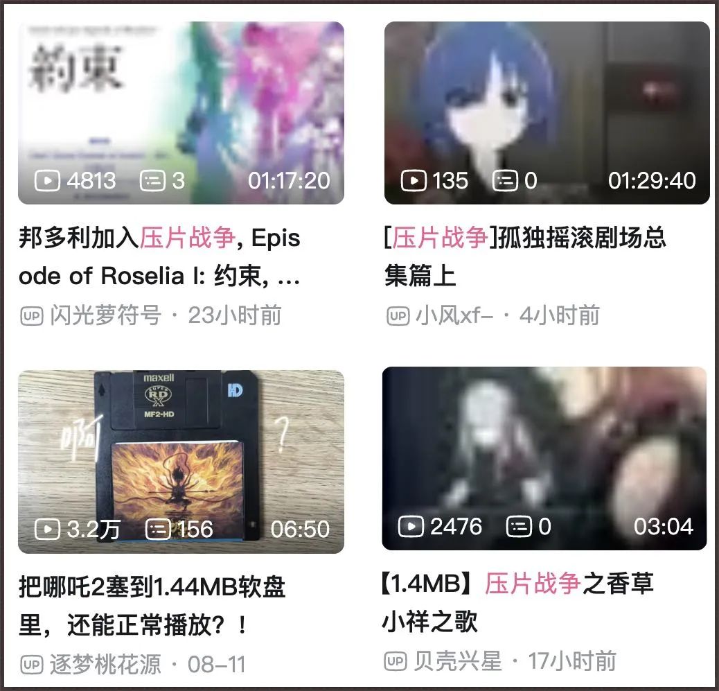 以邦多利和孤獨搖滾等木櫃子樂隊粉絲為首,越來越多的神人開始加入壓片戰爭的比賽,這兩天各種時長1小時以上的全損壓縮視頻層出不窮。