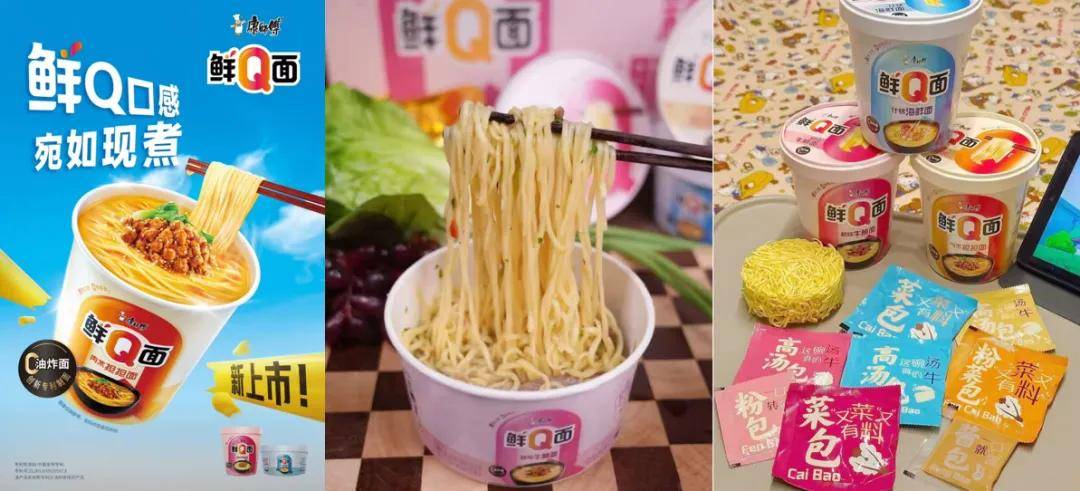 近兩年來,康師傅方便麪堅持“產品+場景”的核心溝通策略。例如,在非油炸領域,聚焦健康場景推出的鮮Q面,採用行業首創的"單簍預煮-冷水激活-強風乾燥"三重工藝,歷時8年研發實現非油炸麪餅的現煮口感,完美解決傳統非油炸面"不入味、沒口感"的痛點,上市以來精準觸達新鋭白領和Z世代,產品力獲得消費者廣泛認可。