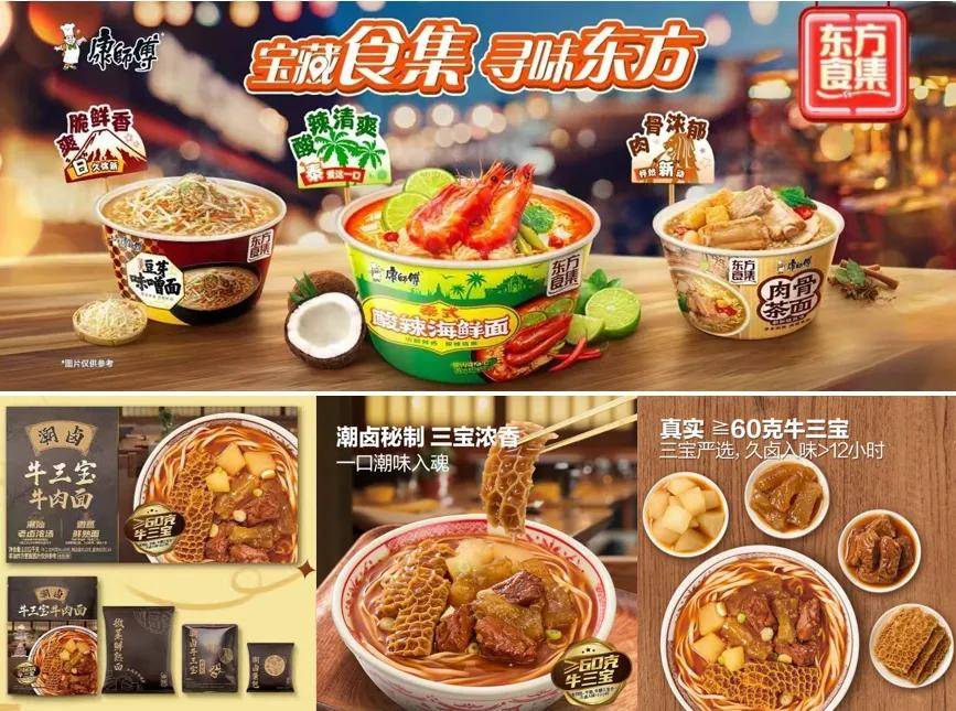 今年,6月上市新品“東方食集”,精選東方地域代表風味的特色食集系列,滿足年輕人嚐鮮需求。很顯然,康師傅方便麪在夯實經典王牌口味這一市場大盤後,正通過積極推陳出新,以更多的地域化風味弘揚中華飲食文化,並吸引更多消費者的購買。