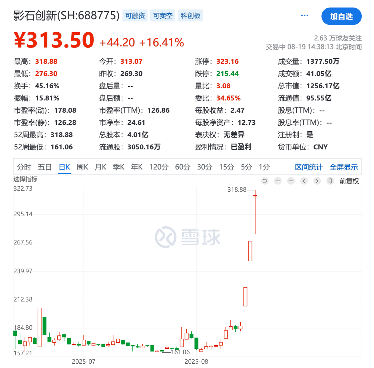 互聯網還沒有從影石創始人劉靖康撒錢的輿論當中清醒過來,影石已經在8月18日開盤後再度迎來漲停,並在19日繼續大幅上漲,市值突破1200億元。