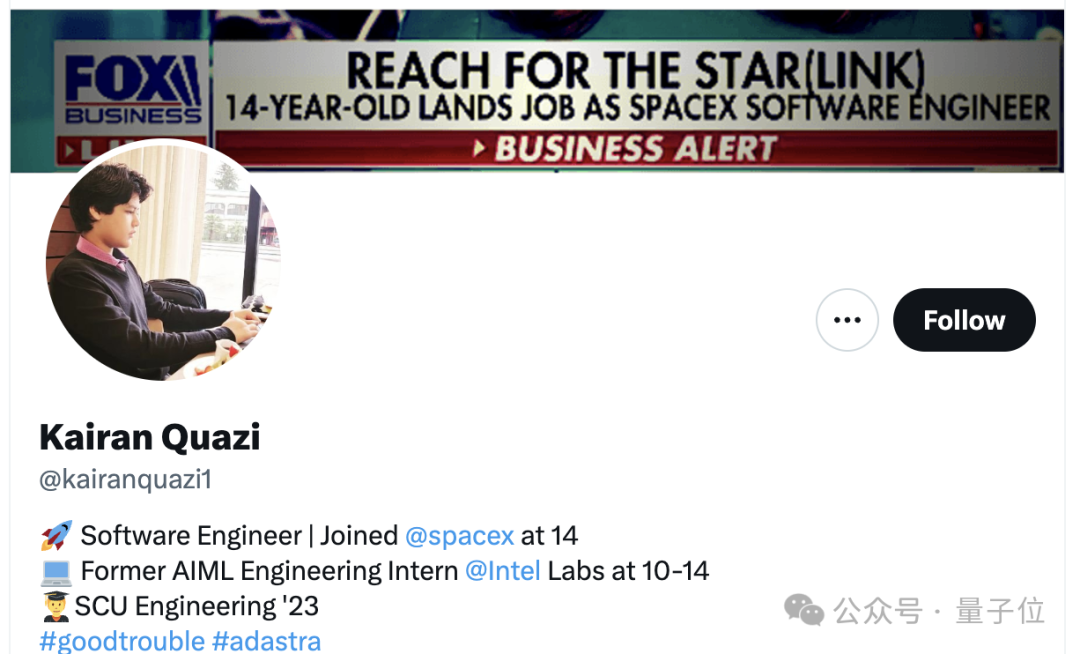 2年前,14歲的Kairan Quazi從聖克拉拉大學畢業,被馬斯克pick,加入入職成功率僅有0.2%的SpaceX,成為Starlink部門最年輕的軟件工程師——這是SpaceX工程密度最高的部門之一。