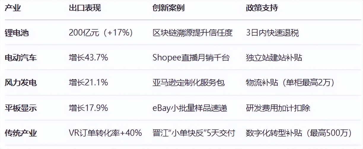 鋰電池出口連續20個月居全國首位,2025年前2月達200億元,同比增長17%。風力發電機組出口同比增長21.1%,電動汽車出口同比增長43.7%,平板顯示模組出口同比增長17.9%。這些新興產業的出口增長為福建省跨境電商提供了強大動力。
