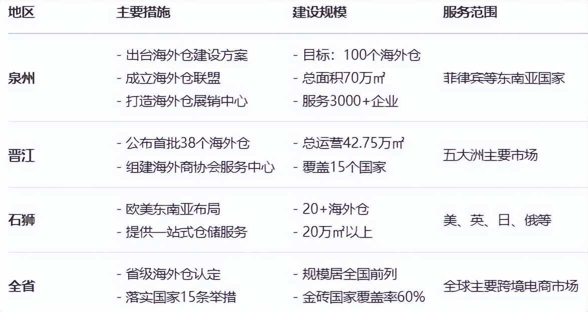 福建省海外倉建設情況彙總