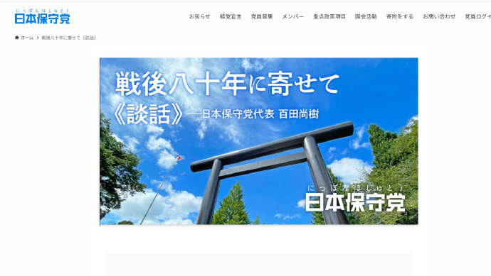 這是日本保守黨815終戰80年談話(日本保守黨黨首百田尚樹)
