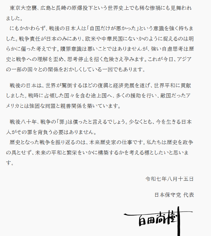 日本保守黨815終戰80年談話,我們來看看日本這些政黨的認知_風聞