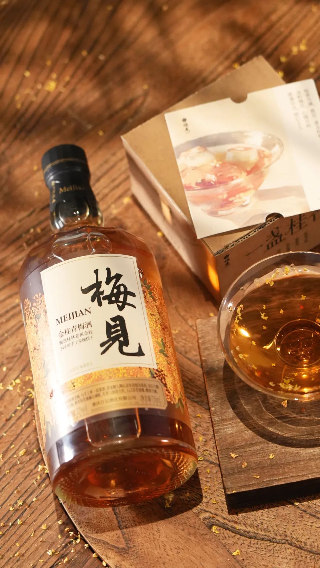 金桂是中國人熟悉的風味,人們是對秋意最直觀的體感也同樣來自馥郁醇和的桂⼦香,把金桂這一盛行中國數千年的傳統風味融入梅酒,這既是梅見一次頗具誠意的東方風味融合創新,也是中國青梅酒再度深入當代年輕人生活場景的一次探索。