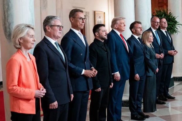 特朗普總統在白宮與烏克蘭總統澤連斯基和其他歐洲領導人會面。(圖源:紐約時報)