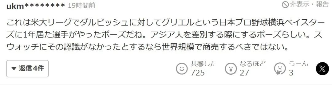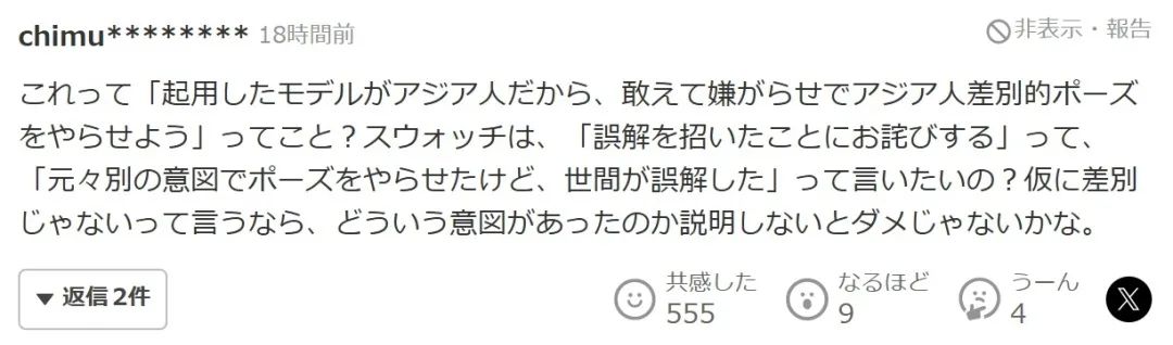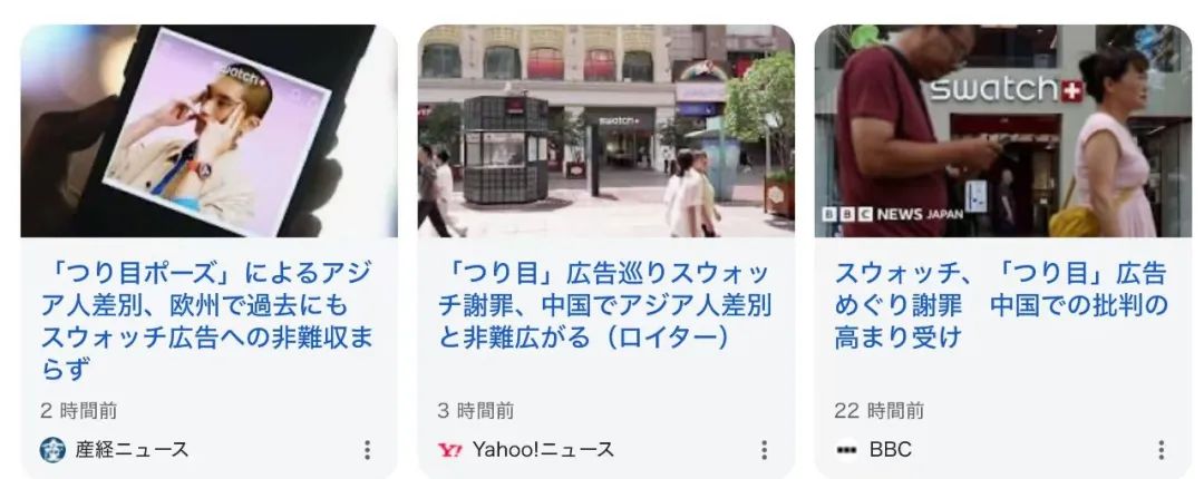 《產經新聞》跟進報道稱:“眯眯眼動作”引起的歧視亞洲人,在歐洲過去也發生過,對Swatch廣告的指責仍未降温