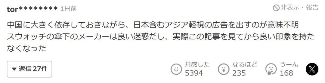 一邊在很大程度地依賴中國,一邊又搞出廣告,蔑視包括日本在內的亞洲,不知所謂。