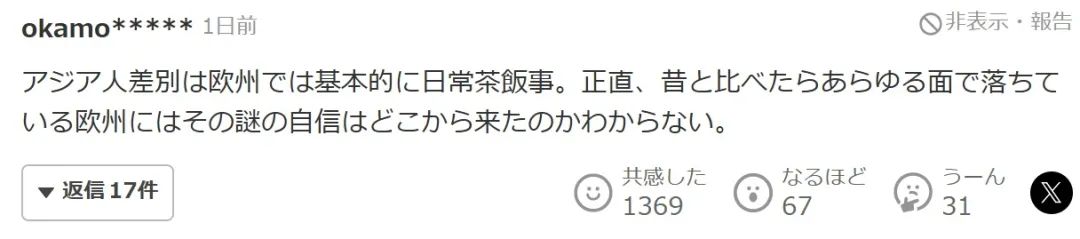 在歐洲,歧視亞洲人是家常便飯。説實話,歐洲跟從前比,方方面面都衰落了,不懂他們的蜜汁自信都從哪兒來的。