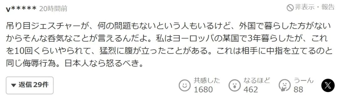 我在歐洲某國生活過3年,遭遇過這個差不多有10次,感到強烈憤怒。這和跟對方豎中指,是一樣的侮辱行為。是日本人的話,就應該憤怒。