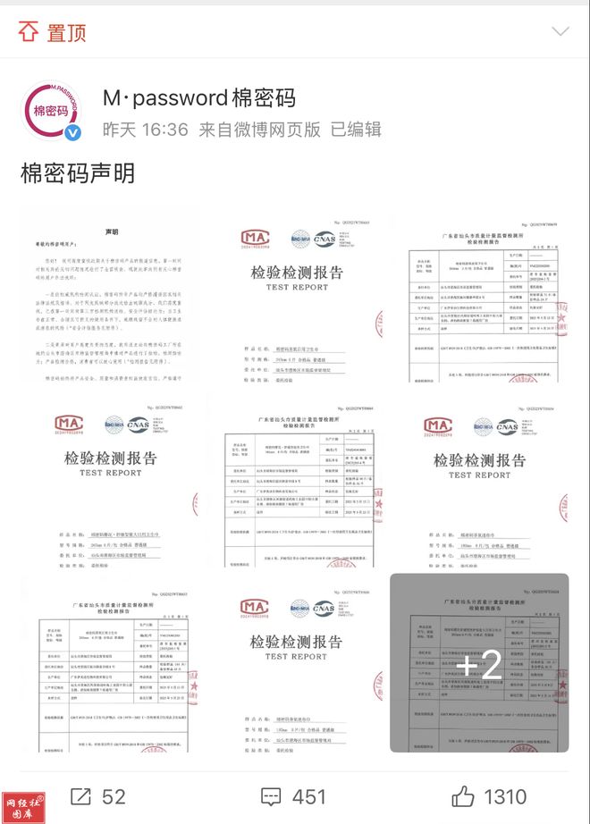 此前的7月25日,辛選集團旗下網紅品牌“棉密碼”衞生巾陷入質量風波。多名舉報人稱,經檢測,多個批次產品中致癌物質硫脲含量嚴重超標,引發公眾健康安全擔憂的同時,也導致品牌面臨嚴重的市場信任危機。