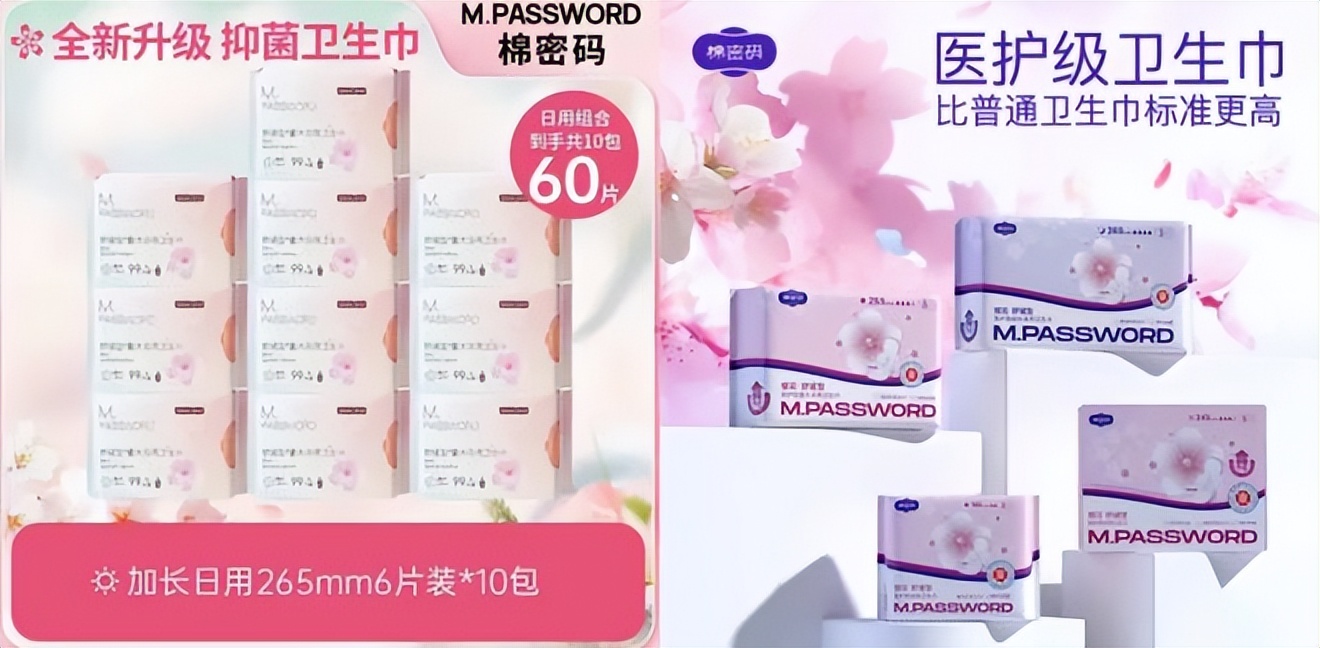 “棉密碼”是辛巴2017年自創的品牌,號稱“辛巴親自參與研發的第一款產品”,其核心賣點是宣稱含有“天然茶多酚芯片”,並在直播間通過碘伏褪色實驗展示抗氧化功效,還暗示有預防婦科疾病的效果。