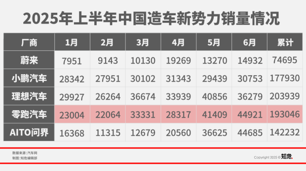 除了產品煥新、矩陣聯合發力因素,海外市場也成為零跑汽車第二增長曲線,2025 年 1-7 月,零跑汽車以 24980 台的出口量位於新勢力品牌出海榜首。