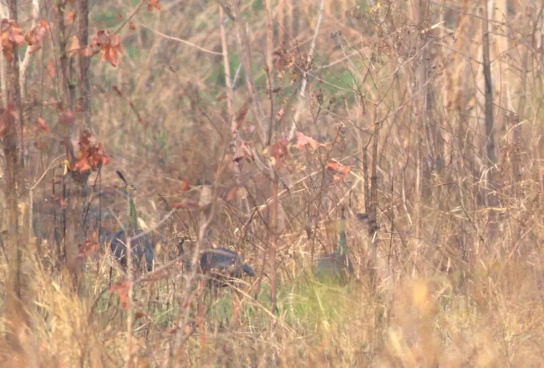 能看到這是什麼東西嗎?三隻綠孔雀。在我們國內,還能看到綠孔雀的地方已經很少了。這是在柬埔寨一個農業開發項目的地邊上,居然還有綠孔雀這樣珍稀的鳥種。