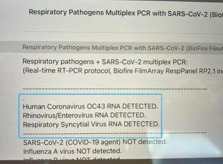 當時小孩住院了3天,因為他一次中了三個病毒,上面這個是人冠狀病毒,不是近期流行的新冠病毒,它是一種在19世紀末從牛傳到人的冠狀病毒,後面這兩個是常規的感冒病毒,這個是鼻病毒或者腸病毒。再下面這個是呼吸道合胞病毒。這兩個病毒大多數時候是自限性的,等7天就可以自愈。但是當冠狀病毒和合胞病毒一起感染的時候,孩子就得了比較嚴重的支氣管炎。