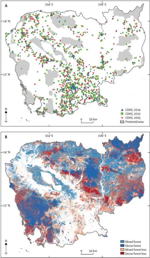 圖片來源:Empirical evidence of the public health benefits of tropical forest conservation in Cambodia: a generalised linear mixed-effects model analysis,DOI:10.1016/S2542-5196(17)30081-5