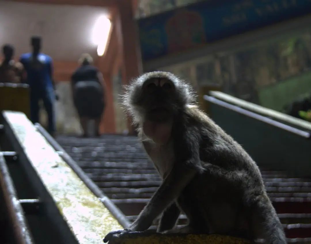 這裏説的猴子叫長尾獼猴(Macaca fascicularis),也叫食蟹獼猴,是一種非常適應近人生活的猴子,上圖拍攝於吉隆坡的黑風洞,在東南亞你能看到它在公園裏、神廟裏到處跑。