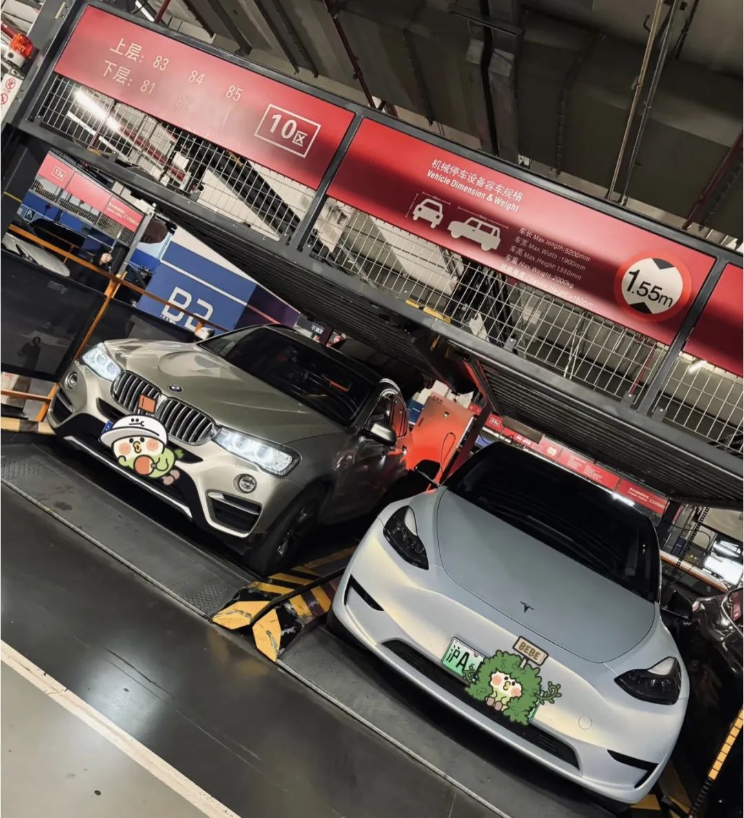 新能源車普遍“身寬體胖”,以特斯拉Model3為例,算上後視鏡有1.95米,而許多老舊立體車位設計標準還停留在燃油車時代,車位寬度僅1.85米。這多出的十幾釐米,成了無法逾越的天塹。