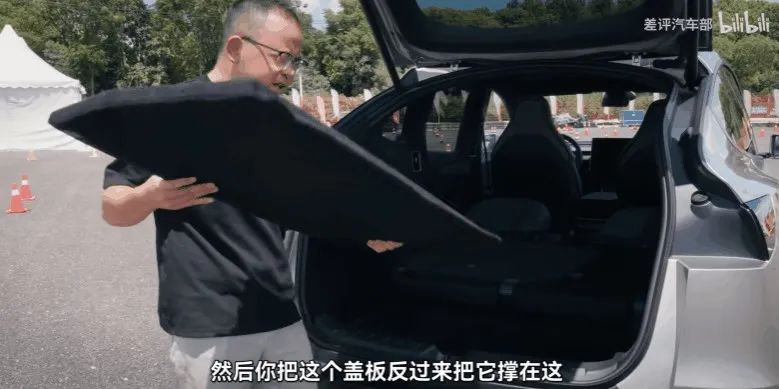 咱們有時候需要用到後備箱蓋板下面的空間,而蓋板又不是很好固定,所以特斯拉這次在靠背後面直接設計了一個小的磁吸觸點。