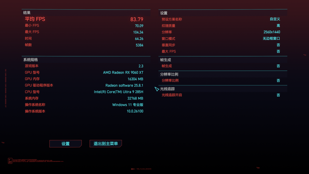 有了顯卡塢,GTi15 Ultra 遊戲的表現可以説是鳥槍換炮了。實測賽博朋克 2077,2K 高畫質並 100% 渲染,平均幀就高達 83 幀,可以説毫無壓力。
