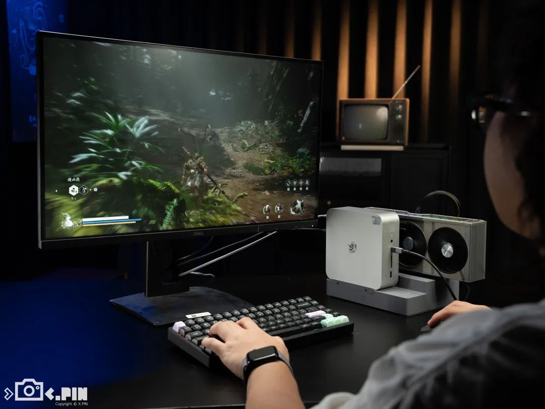 所以這個外接顯卡拓展塢,是以一種不怎麼需要動手的方式,大幅提升了迷你主機的性能。在空間佔用不大的情況下,讓你暢玩 3A 遊戲,並且還能完成一些生產力方面的工作。
