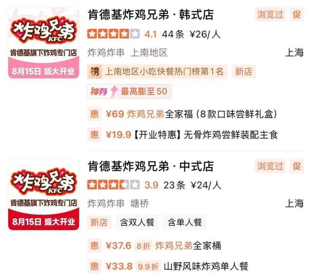 近日,肯德基旗下兩家炸雞專門店——炸雞兄弟中式店、炸雞兄弟韓式店開業。