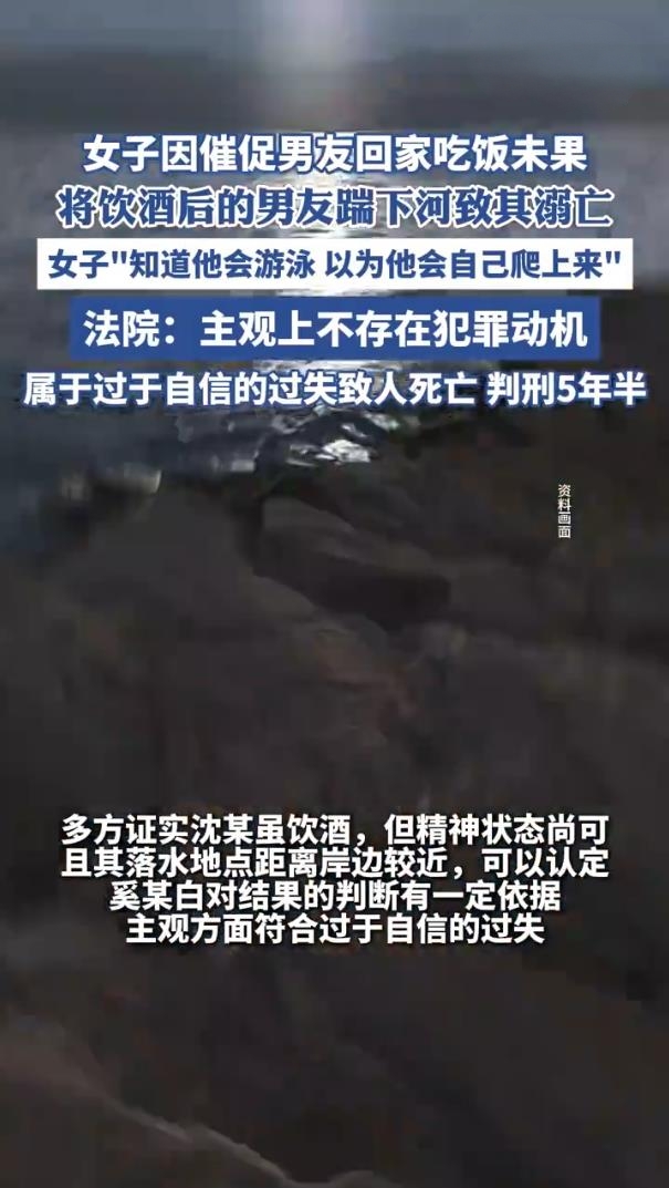 催促回家吃飯未果,女子將飲酒後的男友踹下河致其溺亡,判刑5年半,大家怎麼看?_風聞