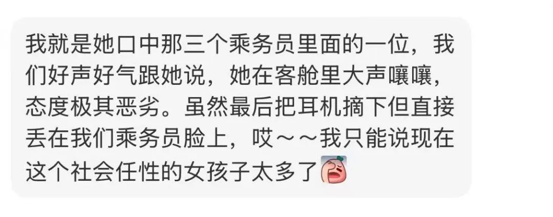 但很快,涉事乘務員刷到帖子並出來回應了:
