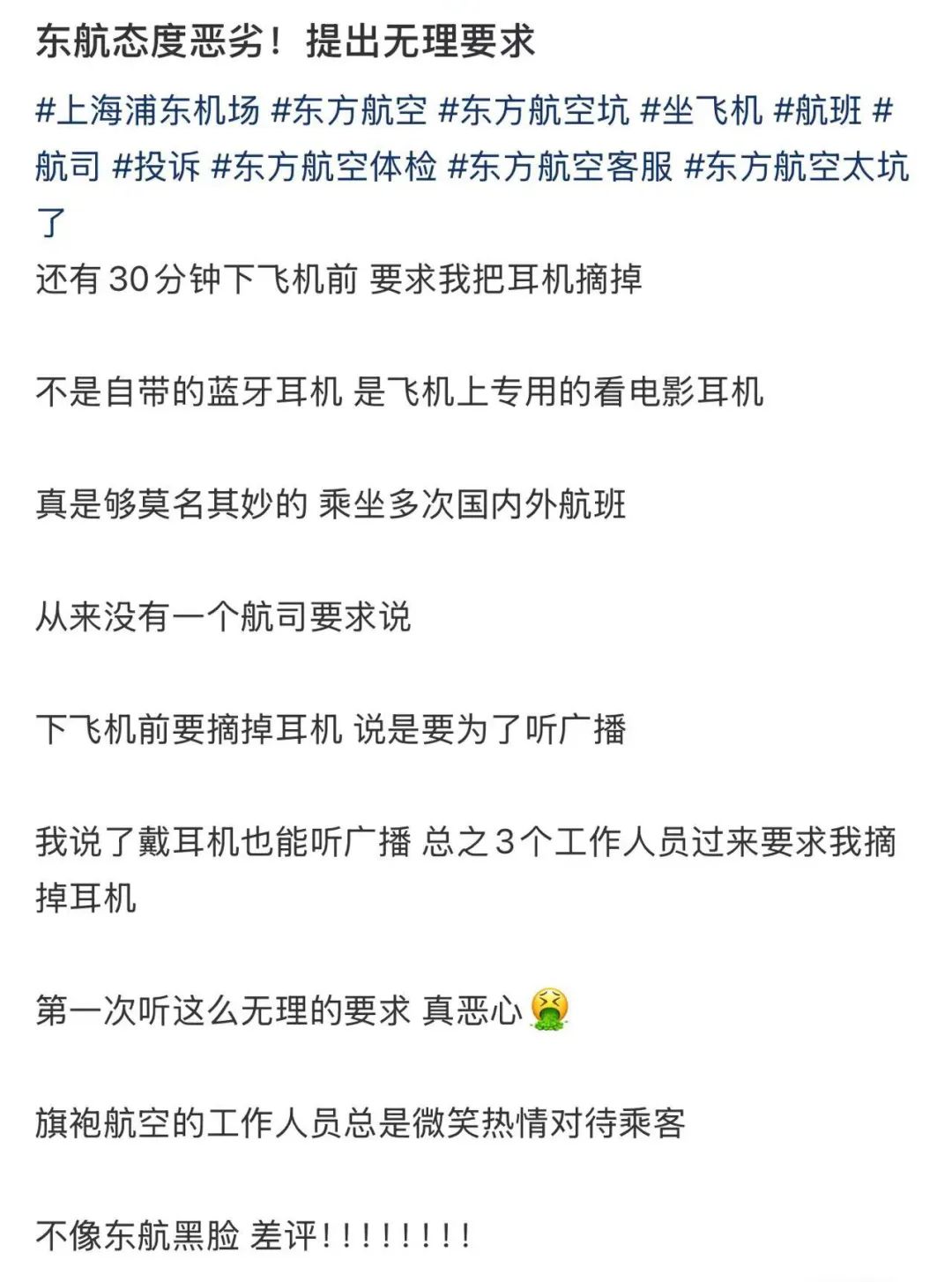 昨天,一位網友發文“投訴”東航乘務員。