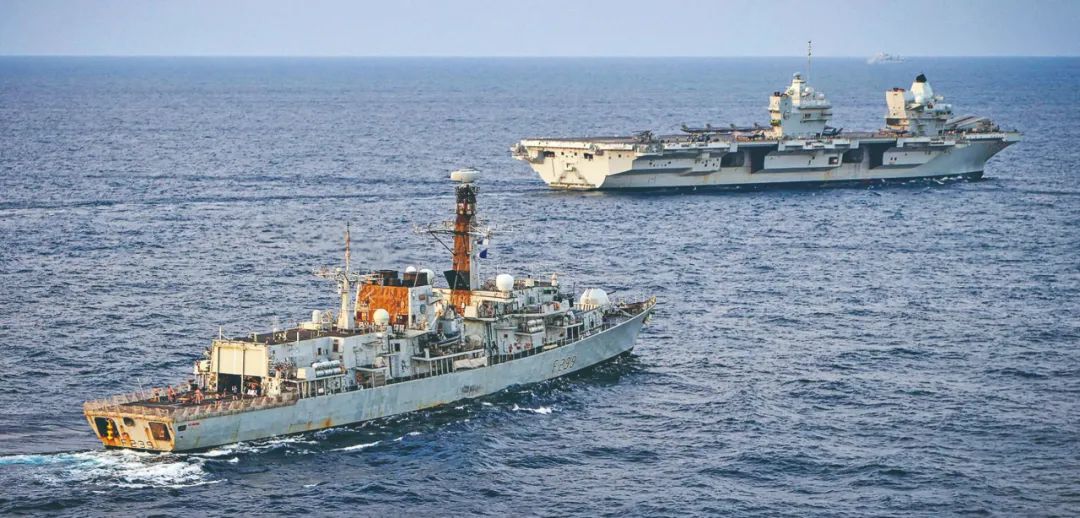參與英國海軍亞太部署任務的“里士滿”號護衞艦(左)服役已超過30年。