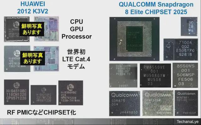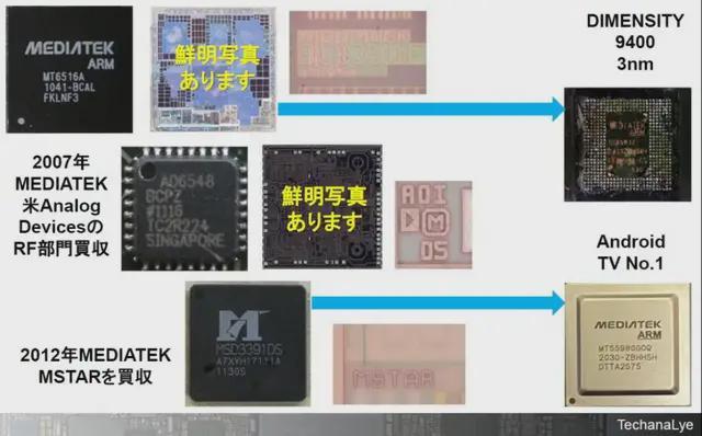 2005年,聯發科在日本僅以其DVD控制器和其他設備而聞名,併為日本以外的亞洲手機生產芯片。圖中所示的“MT6229”是聯發科當時的重磅芯片。最初的標識與現在的有所不同,刻在芯片上。聯發科在2010年左右取得了突破,但進入智能手機市場的速度較慢。然而,到2015年,它已達到與高通相當的地位。這不僅是其不懈努力的結果,也是其在中國中端市場的穩固主導地位的結果。