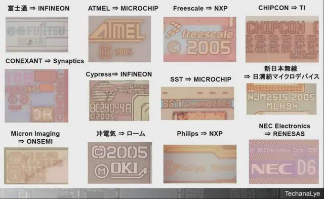 10:標有2005年年份的芯片及其製造商。20 年來它們發生了哪些變化?來源:Techanalye 報告