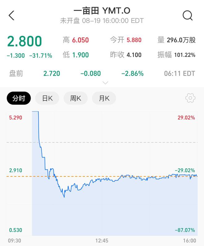 一畝田在本次IPO中發行452.2萬股ADS,發行價為每股4.1美元。8月20日,截止今日收盤,“一畝田”市值3.2億美金。