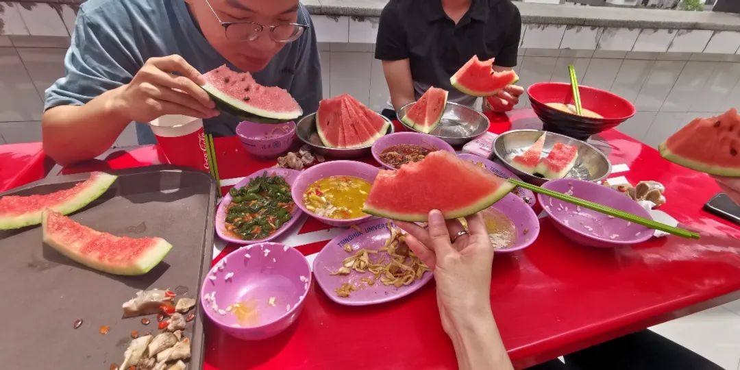如果我們説“今天吃個普通的吧!”,意思就是到食堂的飯菜窗口,點2個菜、3兩米飯,七八塊錢。如果誰心情好,再單點一份醬肉、肘子、烤鴨、西瓜請大家一起吃,更是可以成為一桌人的臨時爸爸!
