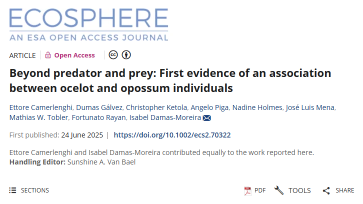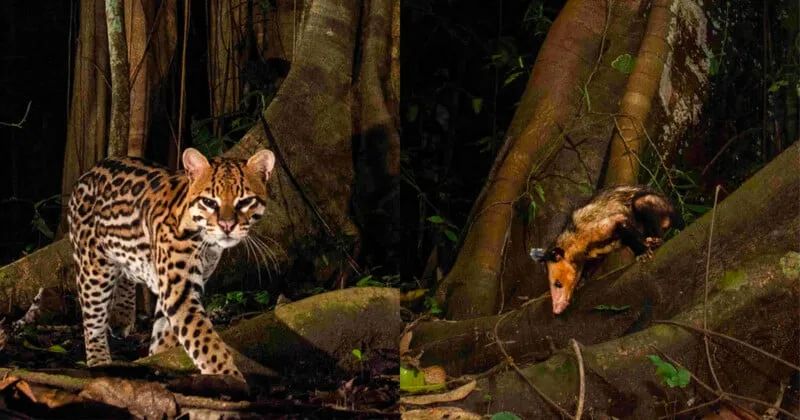 伊莎貝爾將這一發現分享給在秘魯亞馬孫雨林工作的同行們,最後居然收到另外三段極其相似的視頻。這些視頻拍攝於不同地點,時間覆蓋了2019年~2023年,説明負鼠與豹貓廝混絕非偶然。