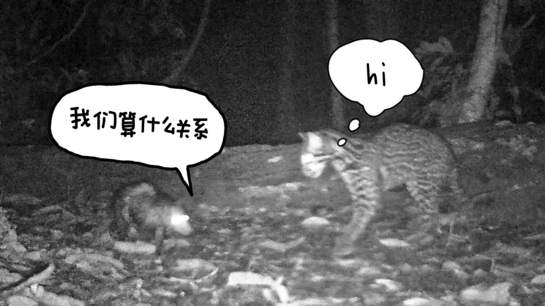 首先,如果視頻描述的真是捕獵場景,那麼負鼠和豹貓相距不到1米還同步行走,多少有些不合常理——兩隻動物一會兒又經過了攝像機,按伊莎貝爾的話説,“親密得像從酒吧一起回家的哥們”;