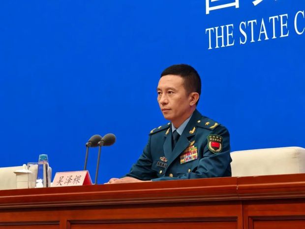 ▲在20日舉行的新聞發佈會上,閲兵領導小組辦公室副主任、中央軍委聯合參謀部作戰局少將副局長吳澤棵介紹稱,在9月3日的閲兵中,空中梯隊將有機型首次公開亮相。