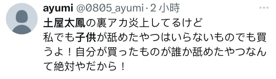 “土屋太鳳因為小號泄漏而遭網暴。對於我而言,只要是孩子舔過的商品,我都會買下來,畢竟我自己絕對不會買別人舔過的東西!”