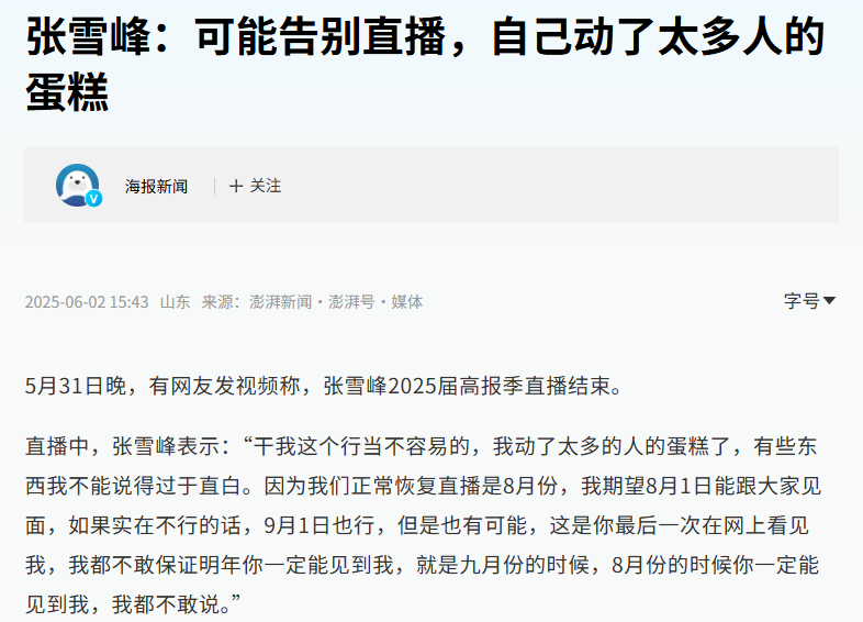 這可能是最後一場直播了,自己可能動了太多人的蛋糕。