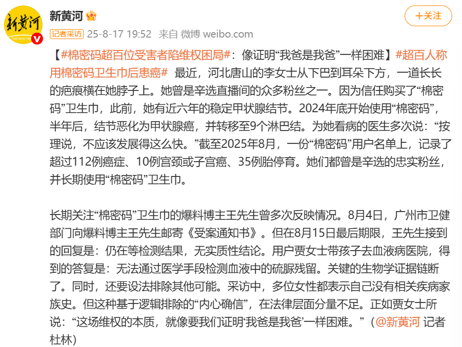 有人説可不能讓辛巴跑了,“棉密碼”衞生棉的事還沒完呢。