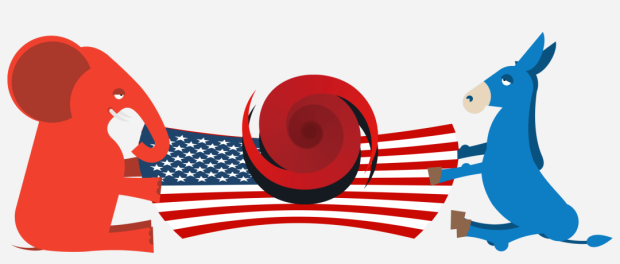 ▲ 美國“驢象”兩黨之爭正在撕裂社會,遇上天災人禍便更加失靈。