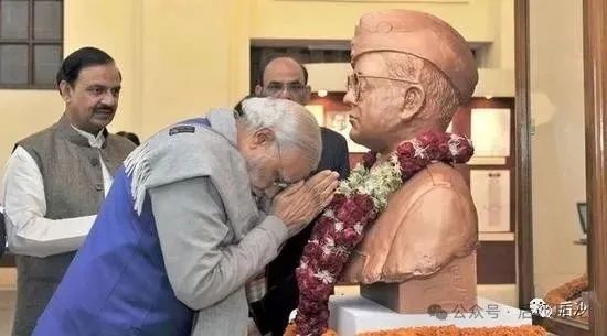莫迪虔誠膜拜的這座雕像,就是錢德拉.鮑斯。
